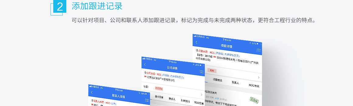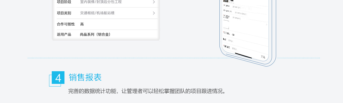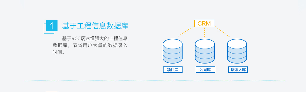搜集和大型銷售管理團(tuán)隊(duì)管理方面積累了非常豐富的經(jīng)驗(yàn);為了滿足工程行業(yè)的企業(yè)在項(xiàng)目分配、報(bào)備、跟進(jìn)、銷售管理方面的需求,我們推出了基于RCC工程信息數(shù)據(jù)庫(kù)的移動(dòng)端CRM系統(tǒng)——RCC工程管理系統(tǒng)。